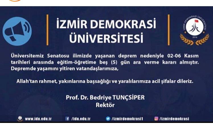 İlimizde Yaşanan Deprem Nedeniyle 02-06 Kasım Tarihleri Arasında Eğitim-Öğretime 5 Gün Ara Verme Kararı Alınmıştır!!!